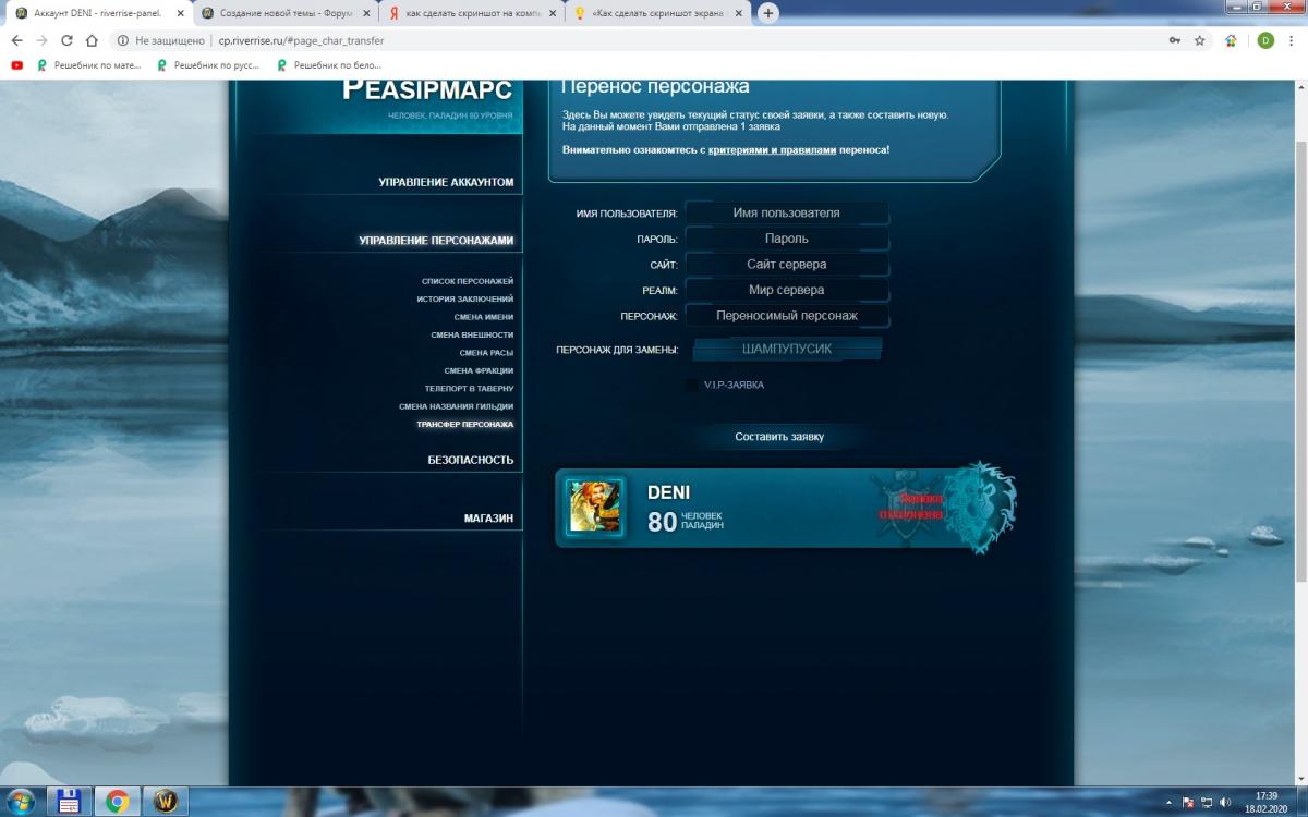с альянса на орду откланено но и чара нет ник Deni
